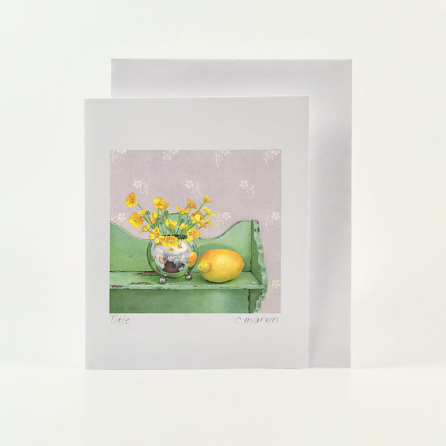 Each art card measures 4X5", comes with a matching white envelope (5.75X4.5") and is titled and signed within a clear plastic sleeve. The print is beautifully crisp and fade-resistant.