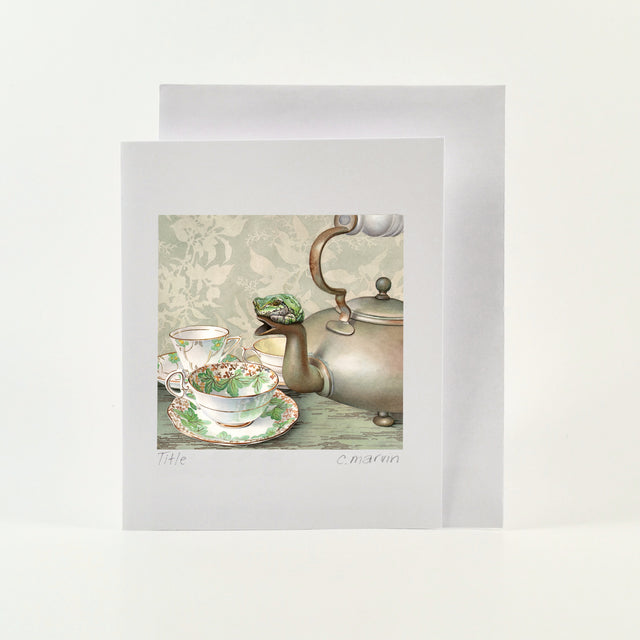 Each art card measures 4X5", comes with a matching white envelope (5.75X4.5") and is titled and signed within a clear plastic sleeve. The print is beautifully crisp and fade-resistant.