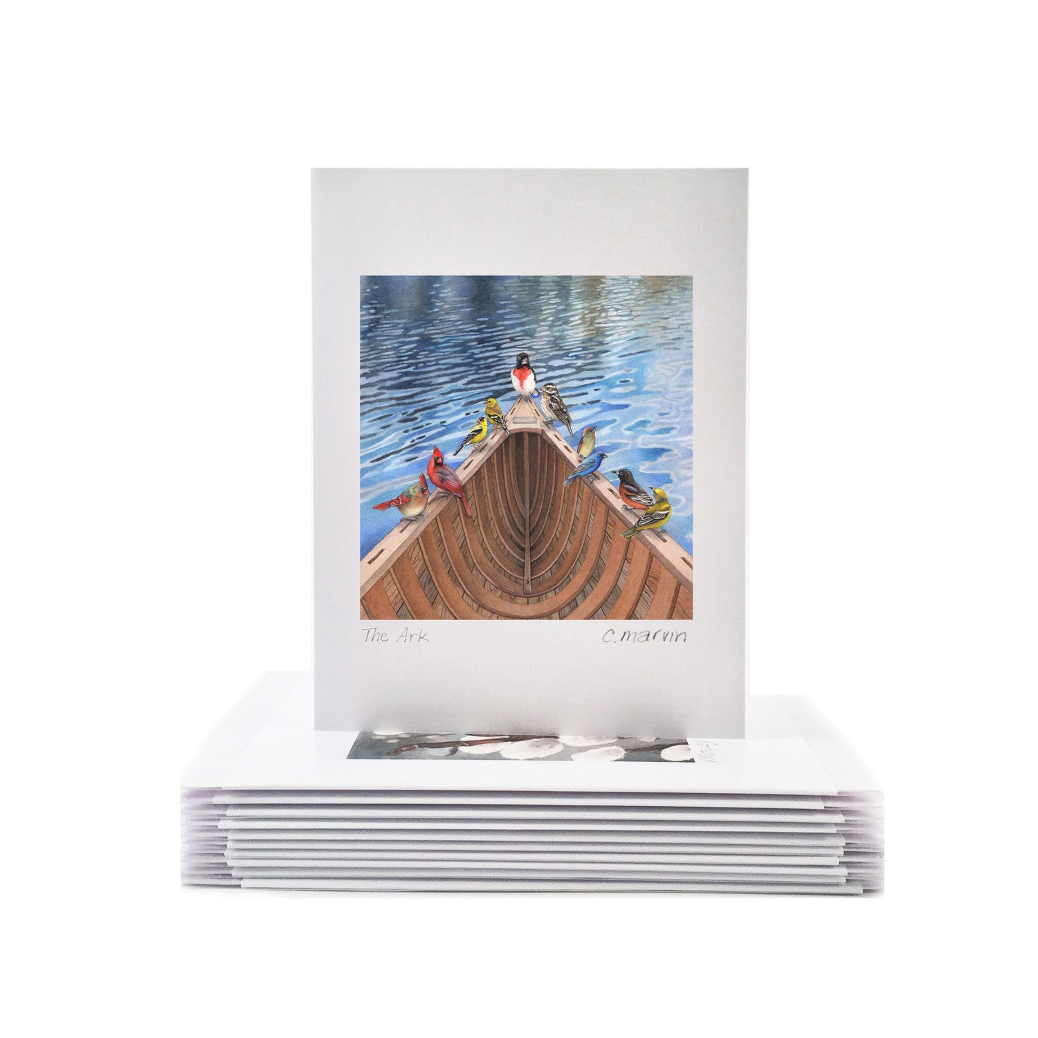 Each art card measures 4X5", comes with a matching white envelope (5.75X4.5") and is titled and signed within a clear plastic sleeve. The print is beautifully crisp and fade-resistant.