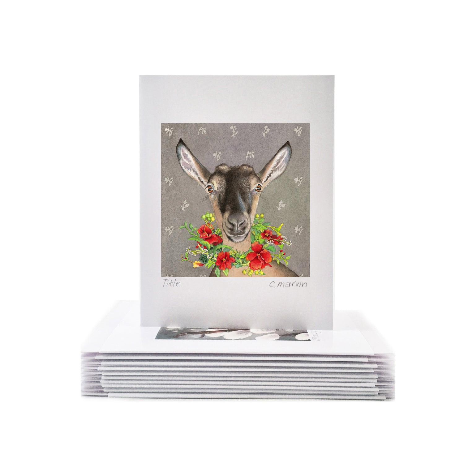 Each art card measures 4X5", comes with a matching white envelope (5.75X4.5") and is titled and signed within a clear plastic sleeve. The print is beautifully crisp and fade-resistant.