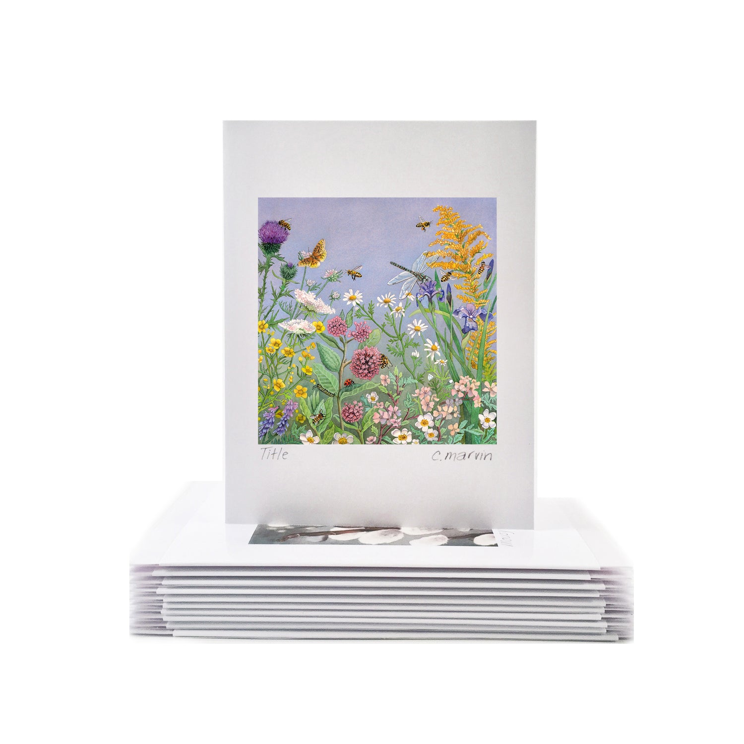 Each art card measures 4X5", comes with a matching white envelope (5.75X4.5") and is titled and signed within a clear plastic sleeve. The print is beautifully crisp and fade-resistant.