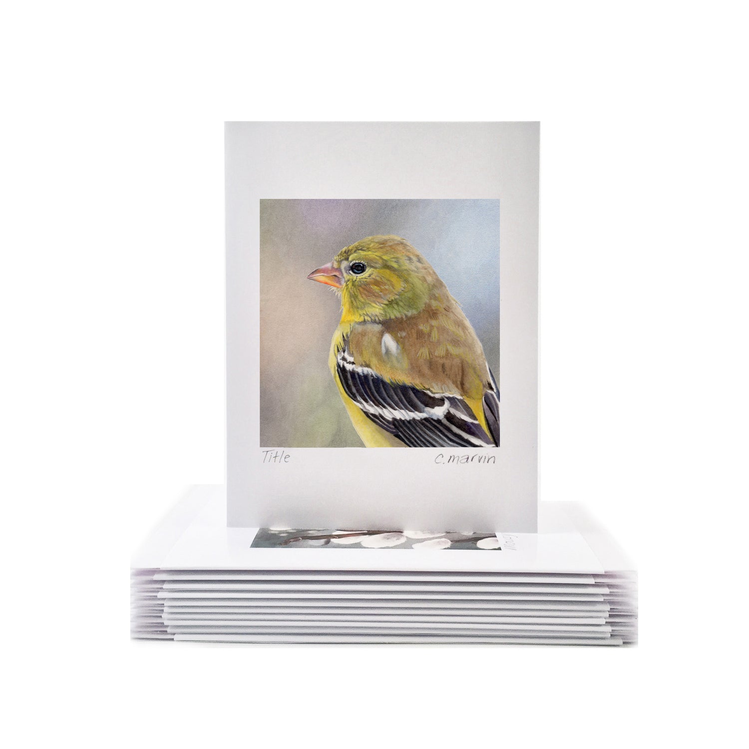 Each art card measures 4X5", comes with a matching white envelope (5.75X4.5") and is titled and signed within a clear plastic sleeve. The print is beautifully crisp and fade-resistant.
