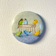 Each magnet measures 2.25” round and is totally protected from the messy kitchen environment with a laminated surface. Beautifully packaged with a removable backing, these are great tucked in an art card or just gifted on their own. The magnet is very strong and capable of holding many papers and photos on your fridge, whiteboard, filing cabinet or locker.
