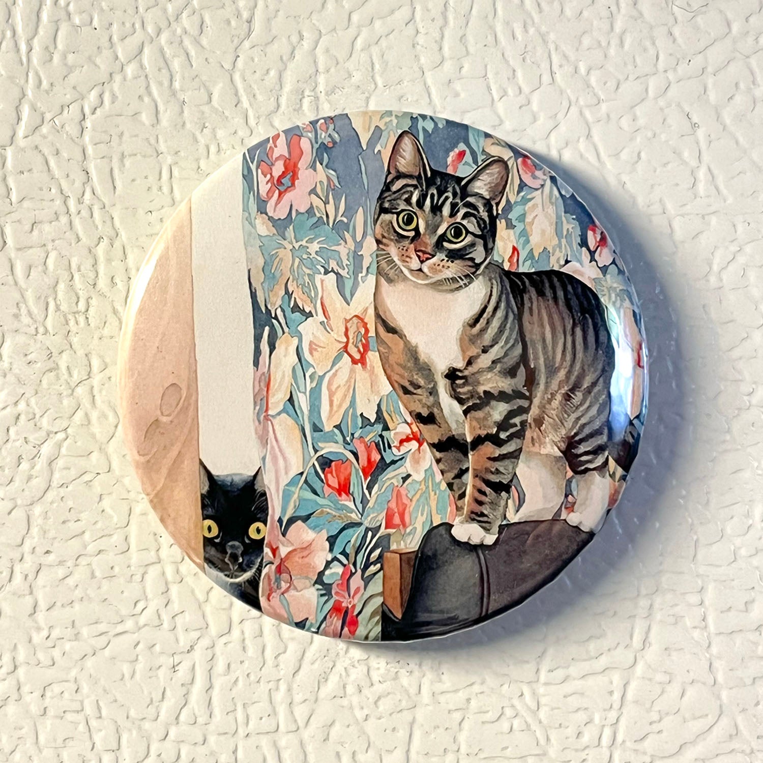 Each magnet measures 2.25” round and is totally protected from the messy kitchen environment with a laminated surface.  Beautifully packaged with a removable backing, these are great tucked in an art card or just gifted on their own. The magnet is very strong and capable of holding many papers and photos on your fridge, whiteboard, filing cabinet or locker.