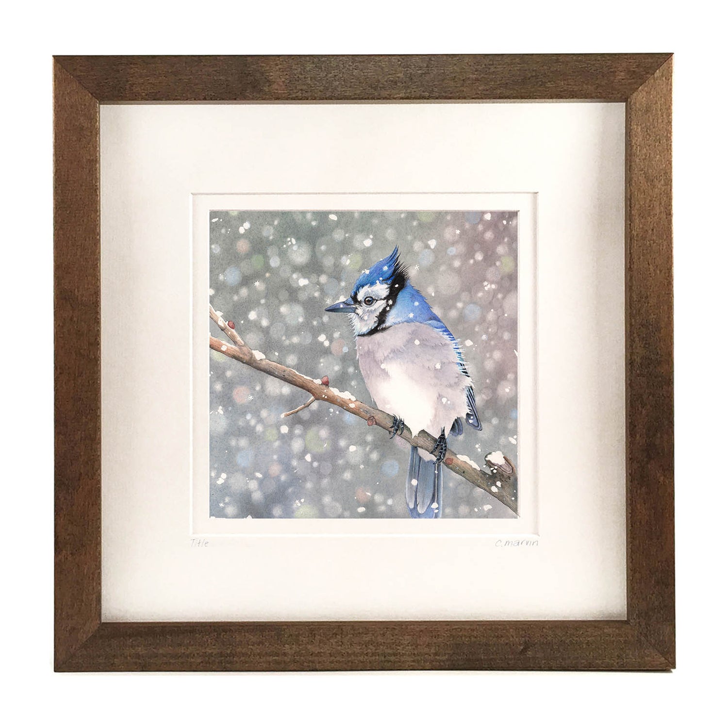 Each framed, limited edition is numbered (minis excepted) and signed by hand from a series of 250 and is beautifully crisp, vibrant and clear. Inks are archival quality, with superior durability and light resistance. The gallery-style frame is made of basswood and is stained in your choice of colour: walnut, ebony or driftwood. The natural grain of the basswood comes through beautifully with these stains. On a wall, they have a lovely, yet unassuming presence that complements the subtlety of the original watercolour.