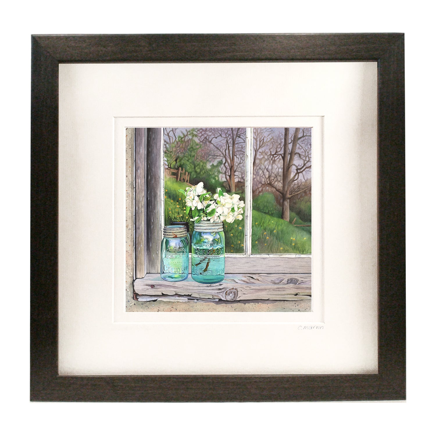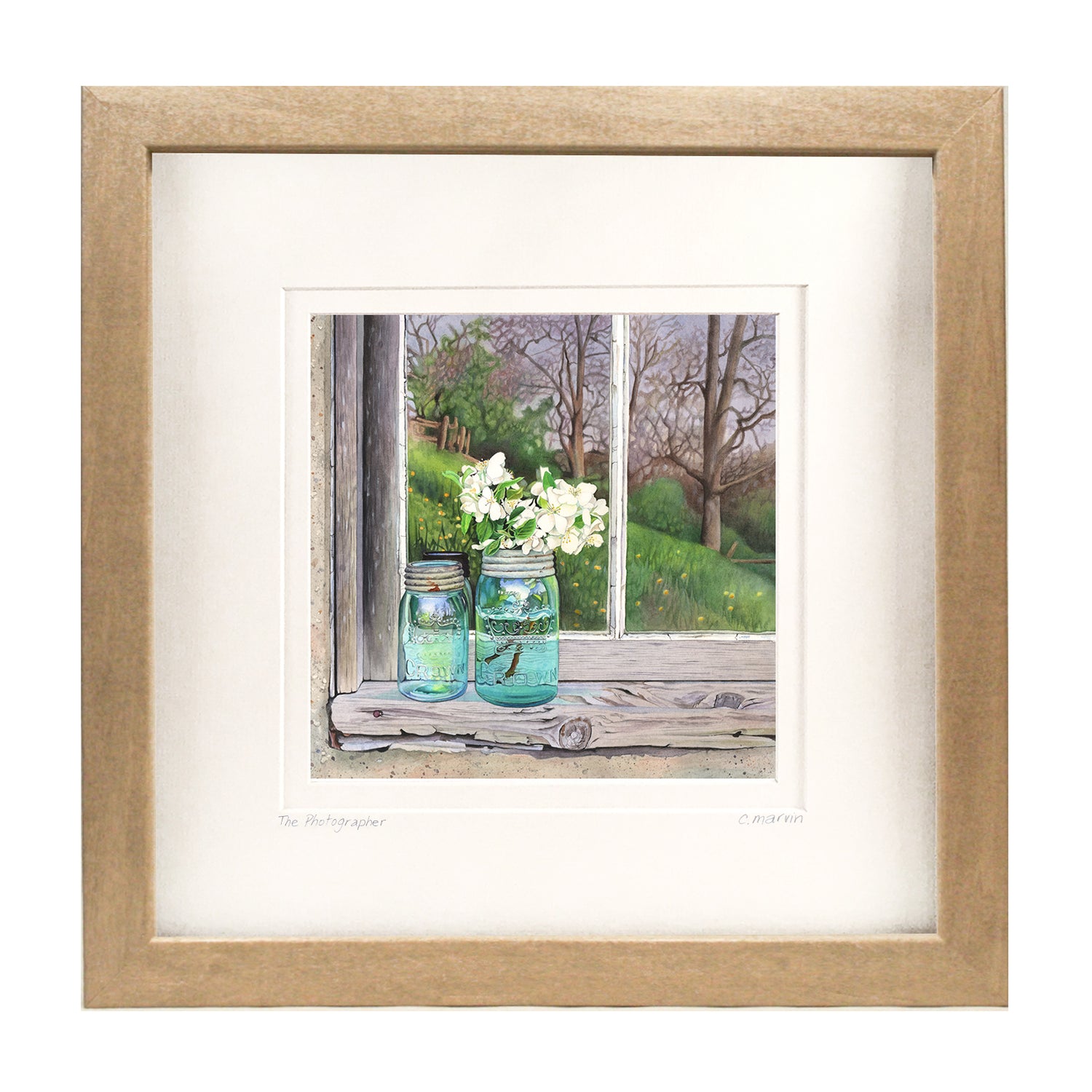 Each framed, limited edition is numbered (minis excepted) and signed by hand from a series of 250 and is beautifully crisp, vibrant and clear. Inks are archival quality, with superior durability and light resistance. The gallery-style frame is made of basswood and is stained in your choice of colour: walnut, ebony or driftwood. The natural grain of the basswood comes through beautifully with these stains. On a wall, they have a lovely, yet unassuming presence that complements the subtlety of the original watercolour.