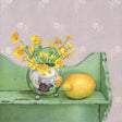 I look forward to the appearance of buttercups on our farm every year. In this piece the wildflowers and chrome sugar bowl are paired with a lemon from my little indoor lemon tree!