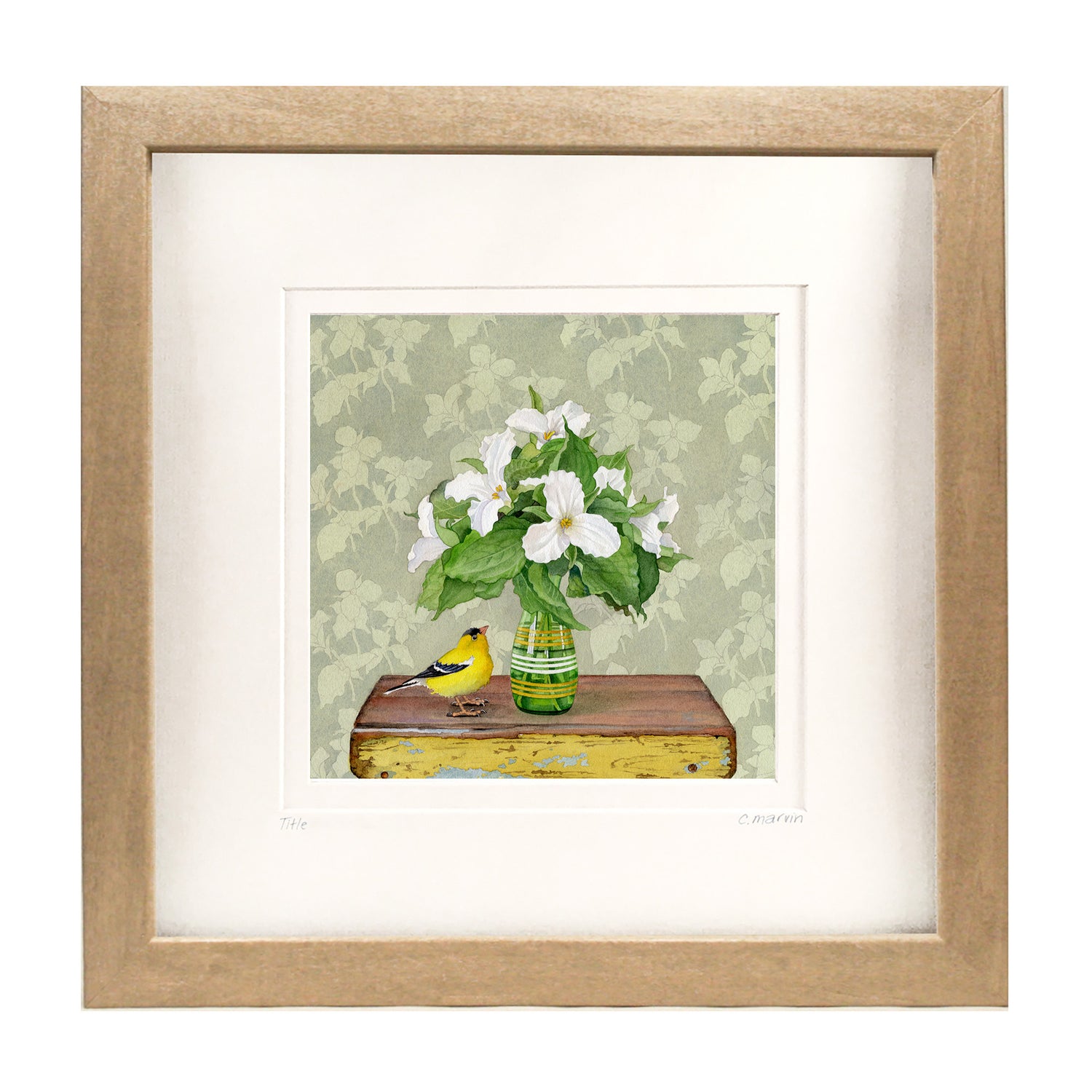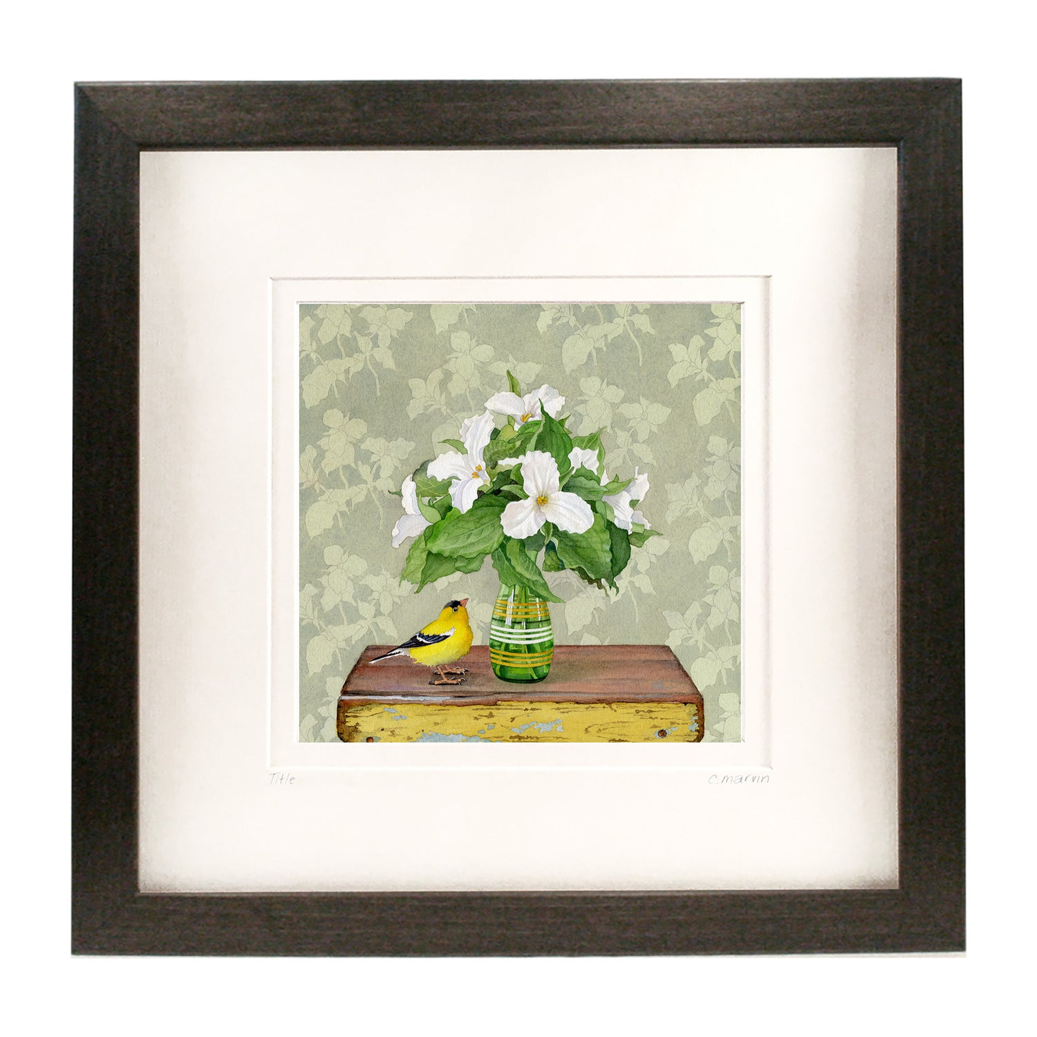 Each framed, limited edition is numbered (minis excepted) and signed by hand from a series of 250 and is beautifully crisp, vibrant and clear. Inks are archival quality, with superior durability and light resistance. The gallery-style frame is made of basswood and is stained in your choice of colour: walnut, ebony or driftwood. The natural grain of the basswood comes through beautifully with these stains. On a wall, they have a lovely, yet unassuming presence that complements the subtlety of the original watercolour.