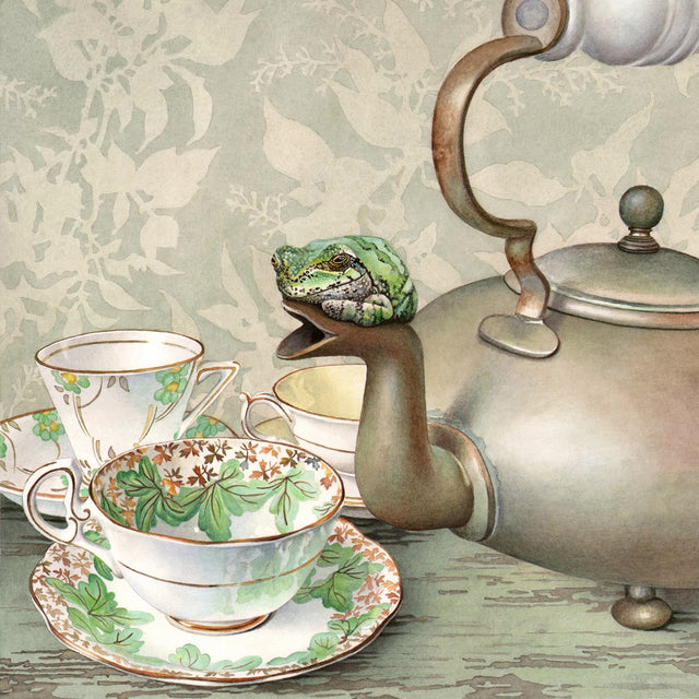 Tea Frog - Walnut / Small Framed Print (13.5") is backordered and will ship as soon as it is back in stock.