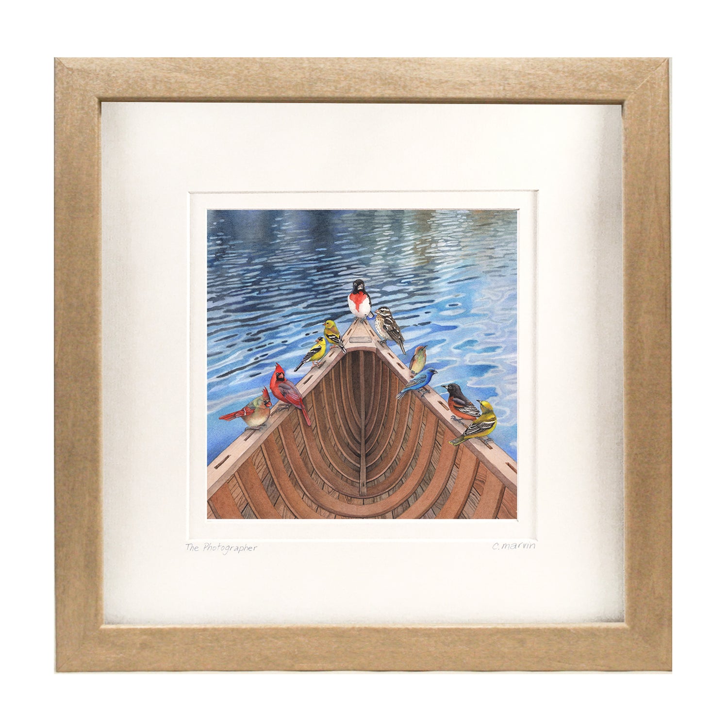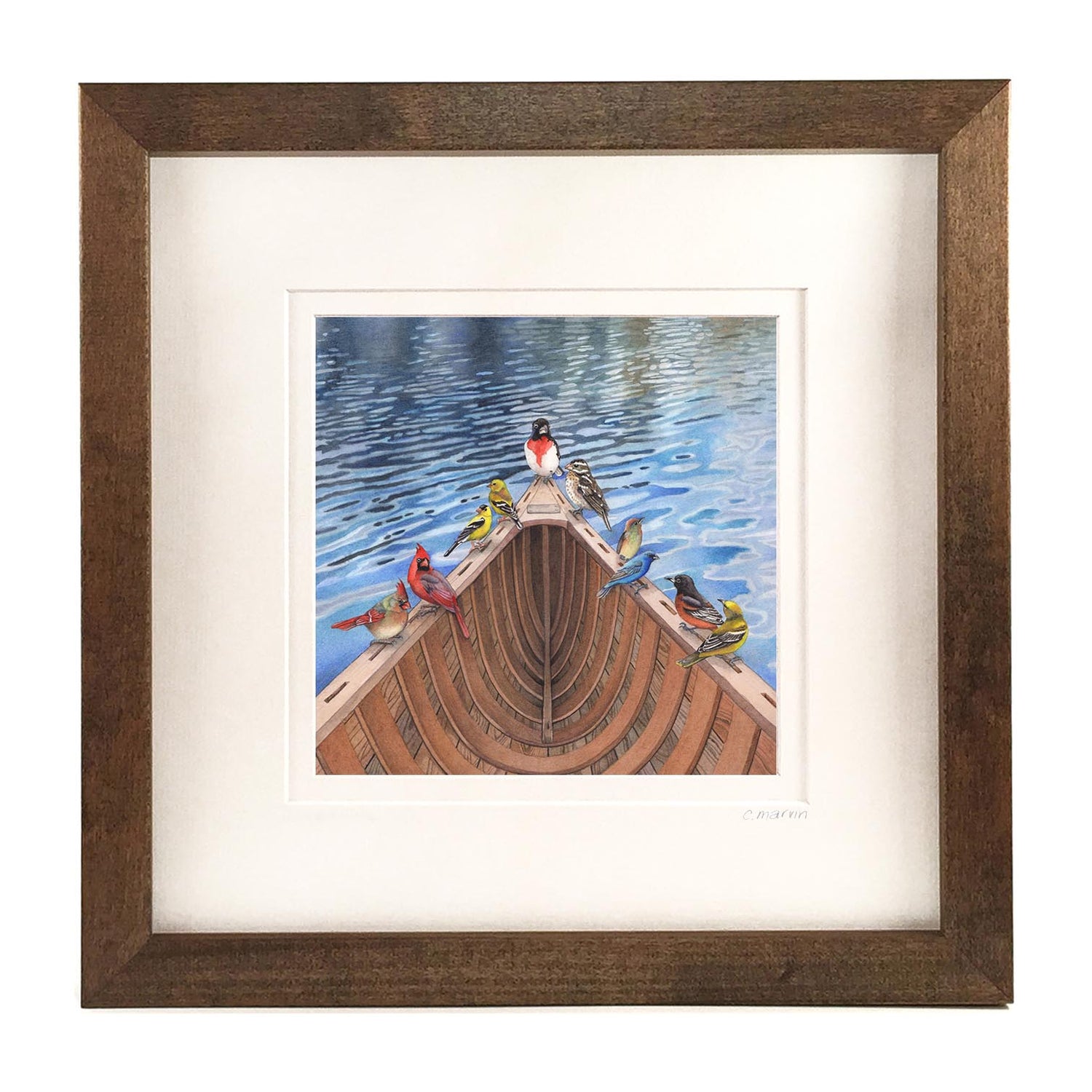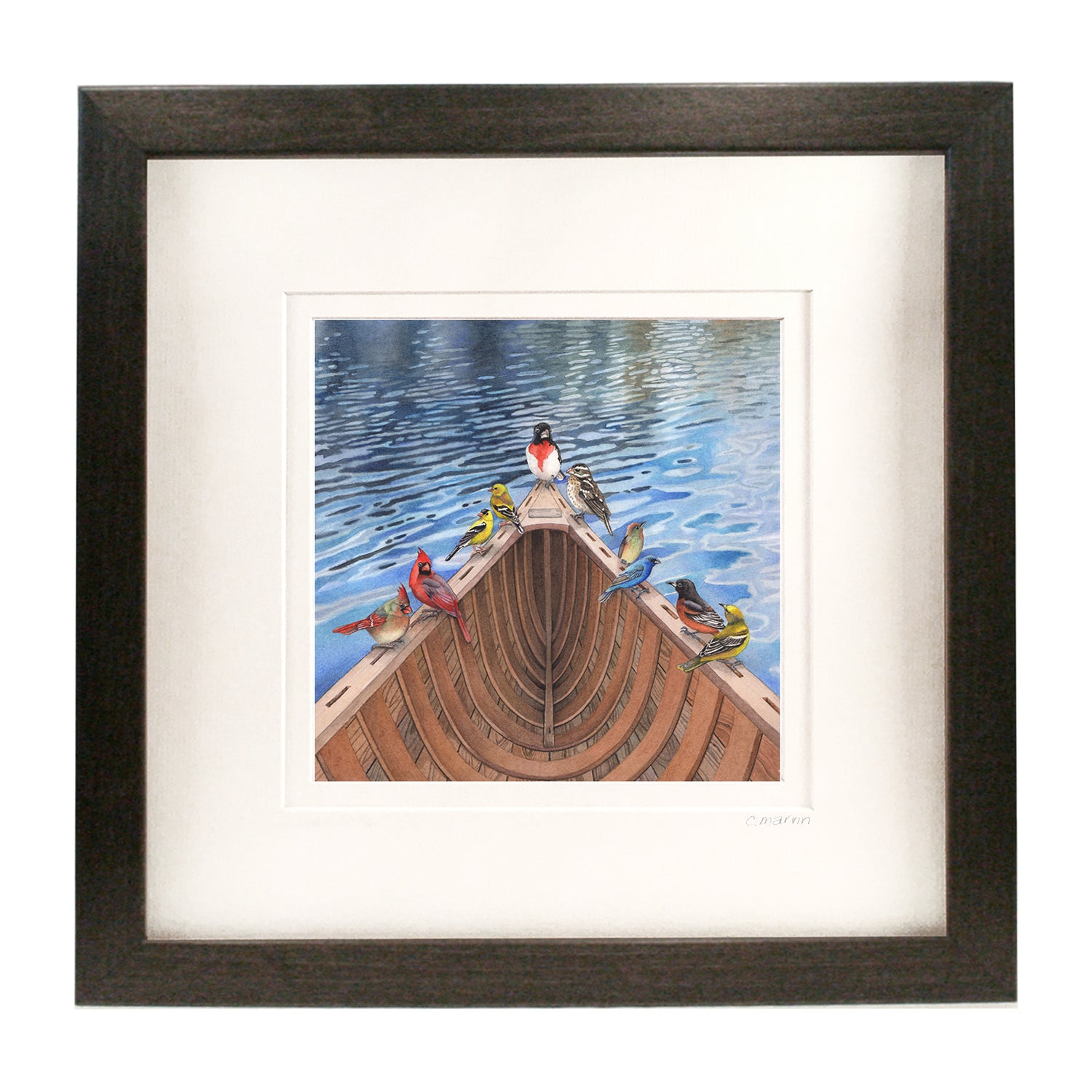 Each framed, limited edition is numbered (minis excepted) and signed by hand from a series of 250 and is beautifully crisp, vibrant and clear. Inks are archival quality, with superior durability and light resistance. The gallery-style frame is made of basswood and is stained in your choice of colour: walnut, ebony or driftwood. The natural grain of the basswood comes through beautifully with these stains. On a wall, they have a lovely, yet unassuming presence that complements the subtlety of the original watercolour.