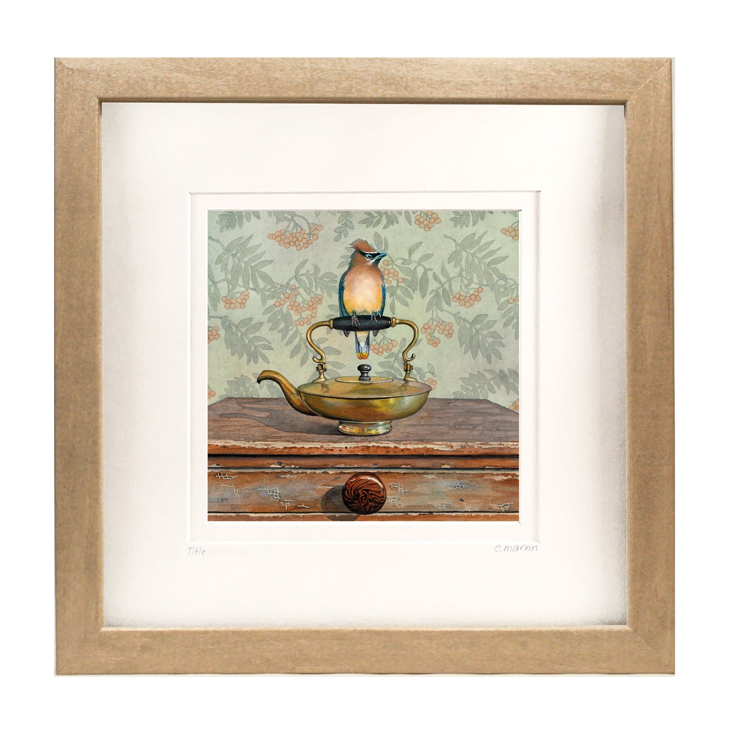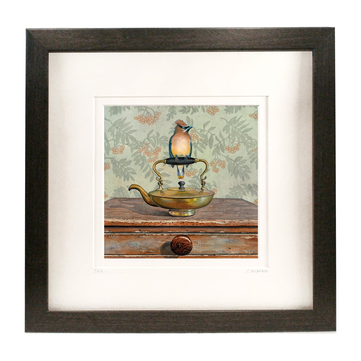Each framed, limited edition is numbered (minis excepted) and signed by hand from a series of 250 and is beautifully crisp, vibrant and clear. Inks are archival quality, with superior durability and light resistance. The gallery-style frame is made of basswood and is stained in your choice of colour: walnut, ebony or driftwood. The natural grain of the basswood comes through beautifully with these stains. On a wall, they have a lovely, yet unassuming presence that complements the subtlety of the original watercolour.