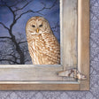 With the nighttime silhouette of an old locust tree in the background, this barred owl patiently observes the goings-on inside the house.