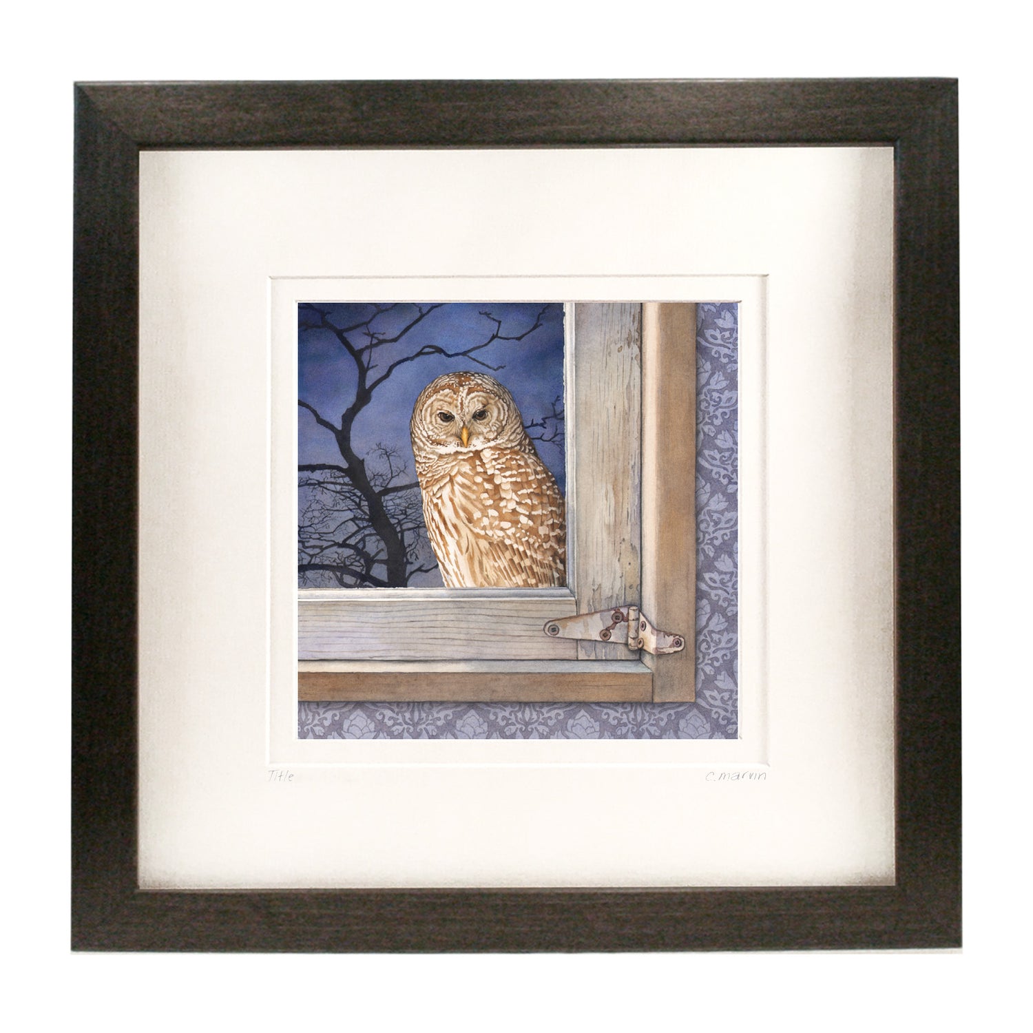 Each framed, limited edition is numbered (minis excepted) and signed by hand from a series of 250 and is beautifully crisp, vibrant and clear. Inks are archival quality, with superior durability and light resistance. The gallery-style frame is made of basswood and is stained in your choice of colour: walnut, ebony or driftwood. The natural grain of the basswood comes through beautifully with these stains. On a wall, they have a lovely, yet unassuming presence that complements the subtlety of the original watercolour.