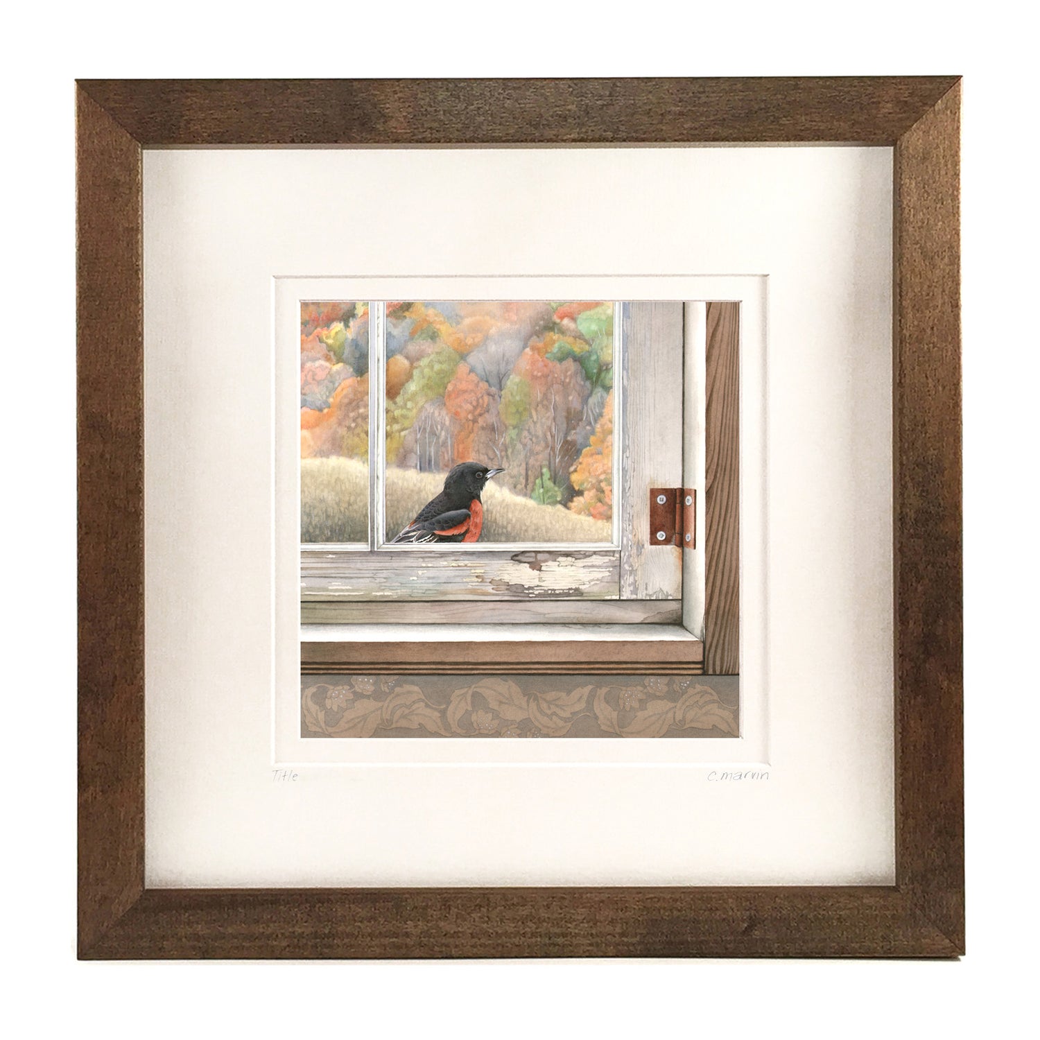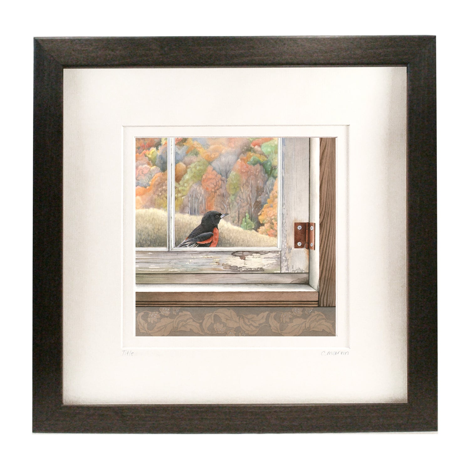 Each framed, limited edition is numbered (minis excepted) and signed by hand from a series of 250 and is beautifully crisp, vibrant and clear. Inks are archival quality, with superior durability and light resistance. The gallery-style frame is made of basswood and is stained in your choice of colour: walnut, ebony or driftwood. The natural grain of the basswood comes through beautifully with these stains. On a wall, they have a lovely, yet unassuming presence that complements the subtlety of the original watercolour.