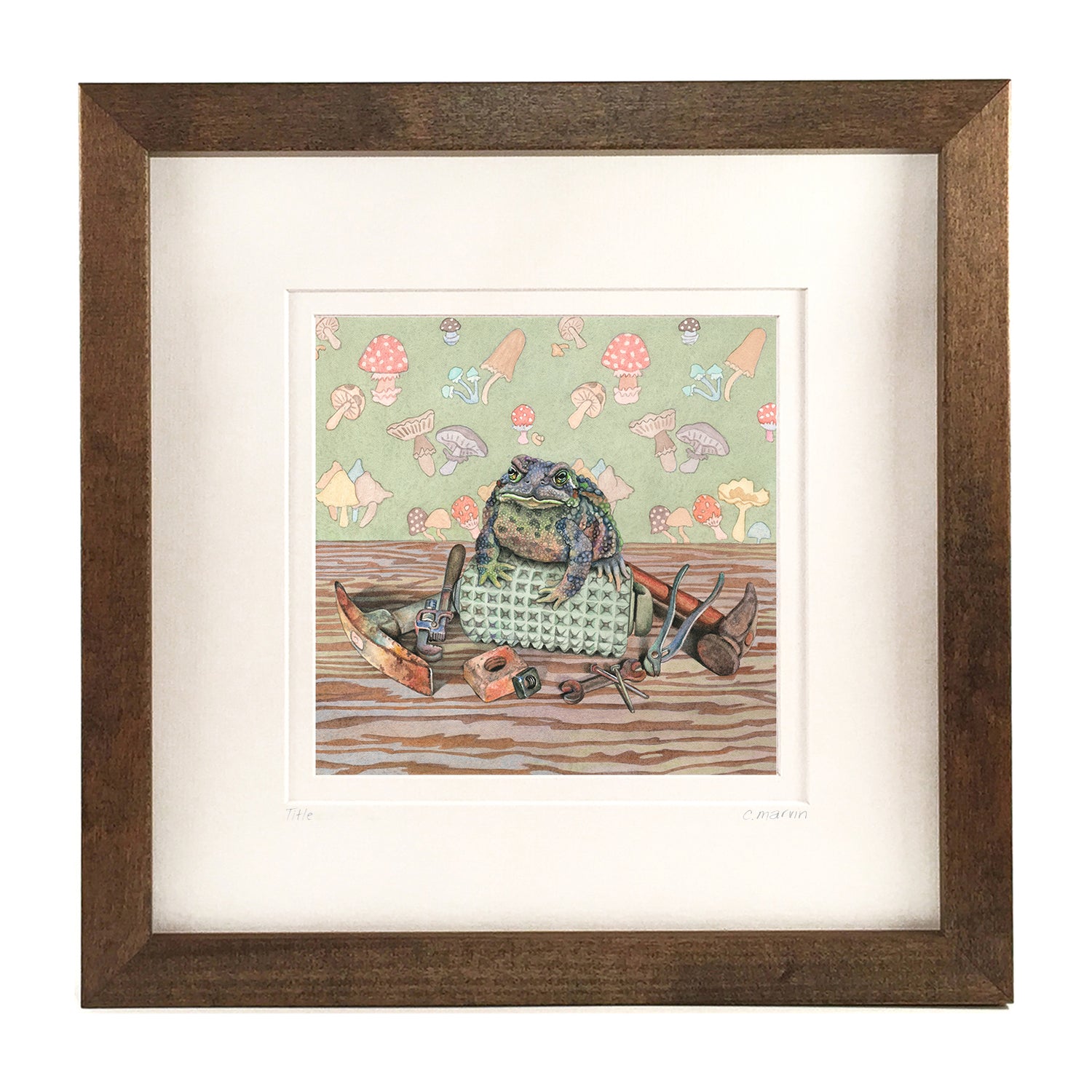 Minis: The image itself is 3X3" with a 6X6" SINGLE acid-free mat. The total size, including the frame is 7.5X7.5". Please note that minis are not numbered editions.
