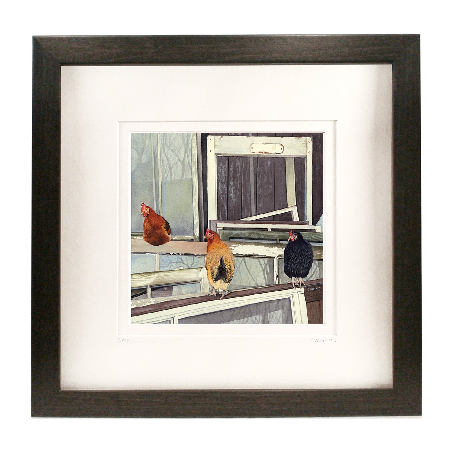 Each framed, limited edition is numbered (minis excepted) and signed by hand from a series of 250 and is beautifully crisp, vibrant and clear. Inks are archival quality, with superior durability and light resistance. The gallery-style frame is made of basswood and is stained in your choice of colour: walnut, ebony or driftwood. The natural grain of the basswood comes through beautifully with these stains. On a wall, they have a lovely, yet unassuming presence that complements the subtlety of the original watercolour.