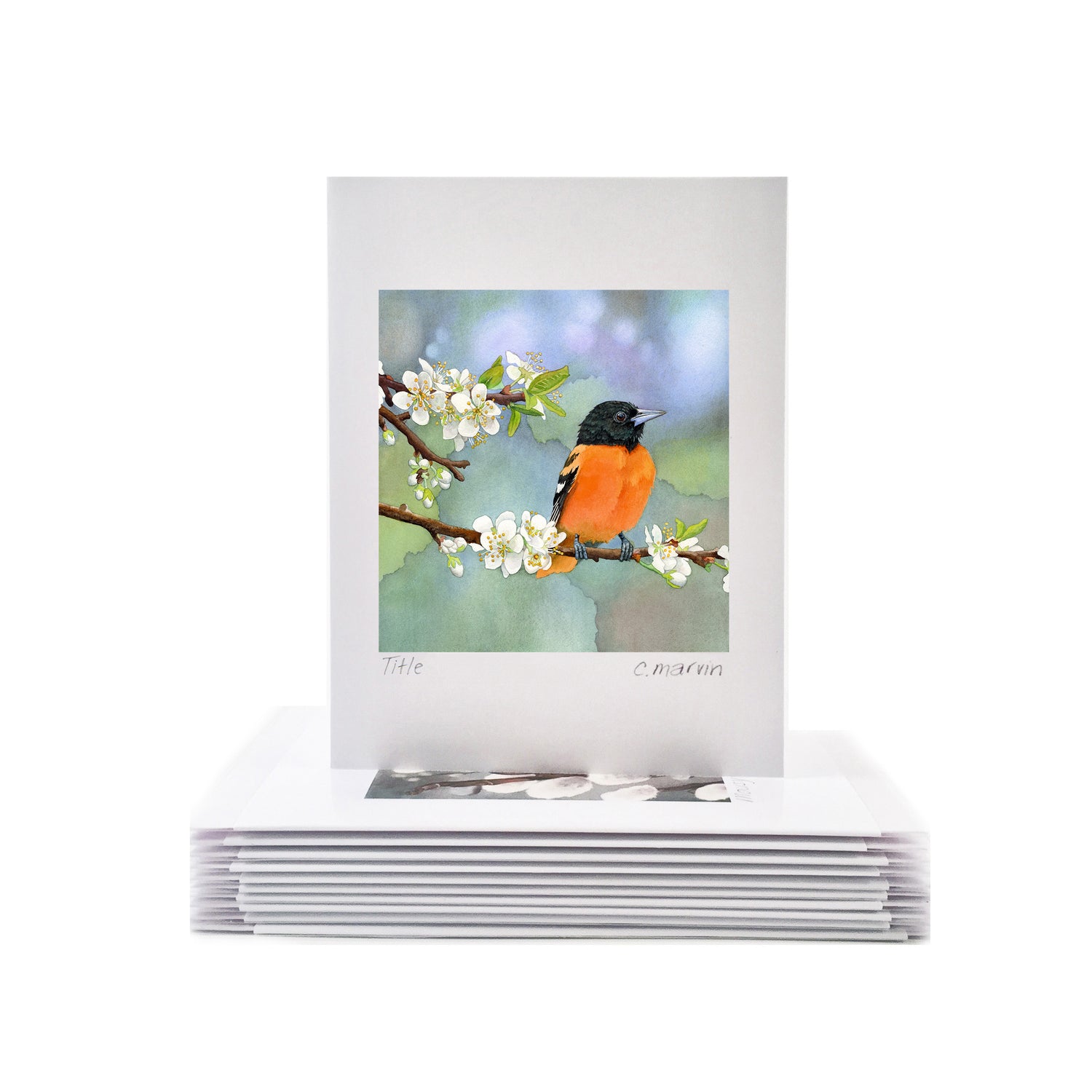 Each art card measures 4X5", comes with a matching white envelope (5.75X4.5") and is titled and signed within a clear plastic sleeve. The print is beautifully crisp and fade-resistant.