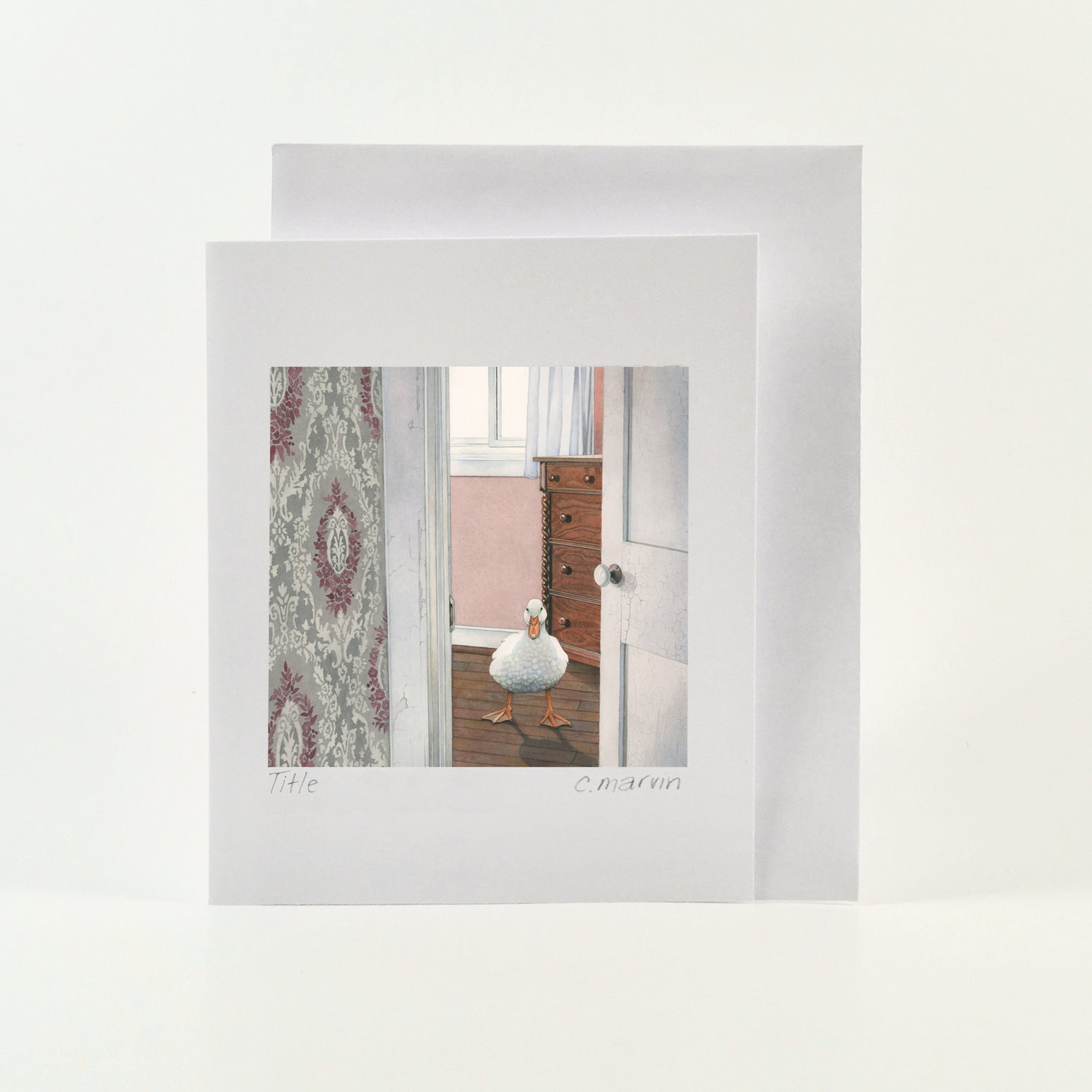 Each art card measures 4X5", comes with a matching white envelope (5.75X4.5") and is titled and signed within a clear plastic sleeve. The print is beautifully crisp and fade-resistant.