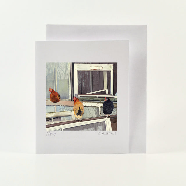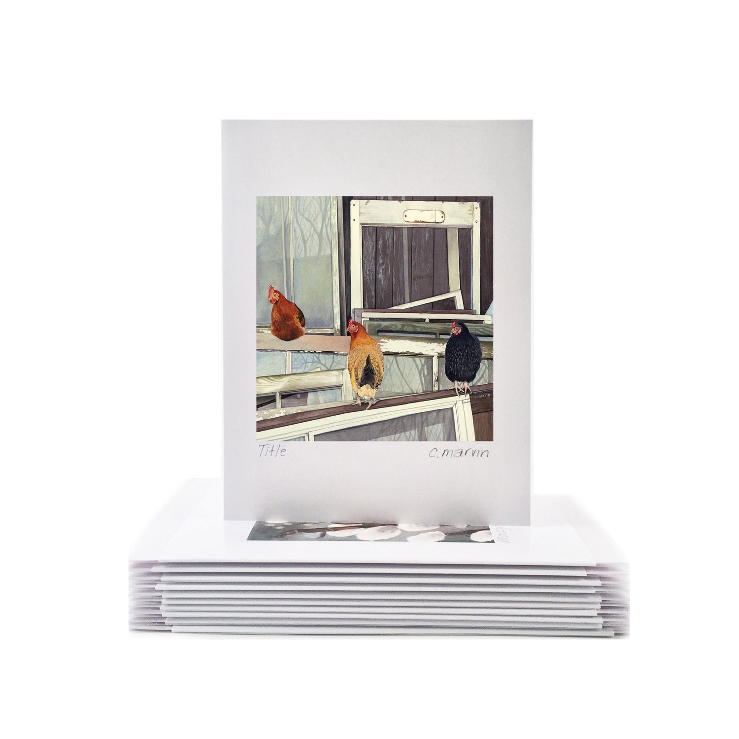 Each art card measures 4X5", comes with a matching white envelope (5.75X4.5") and is titled and signed within a clear plastic sleeve. The print is beautifully crisp and fade-resistant.