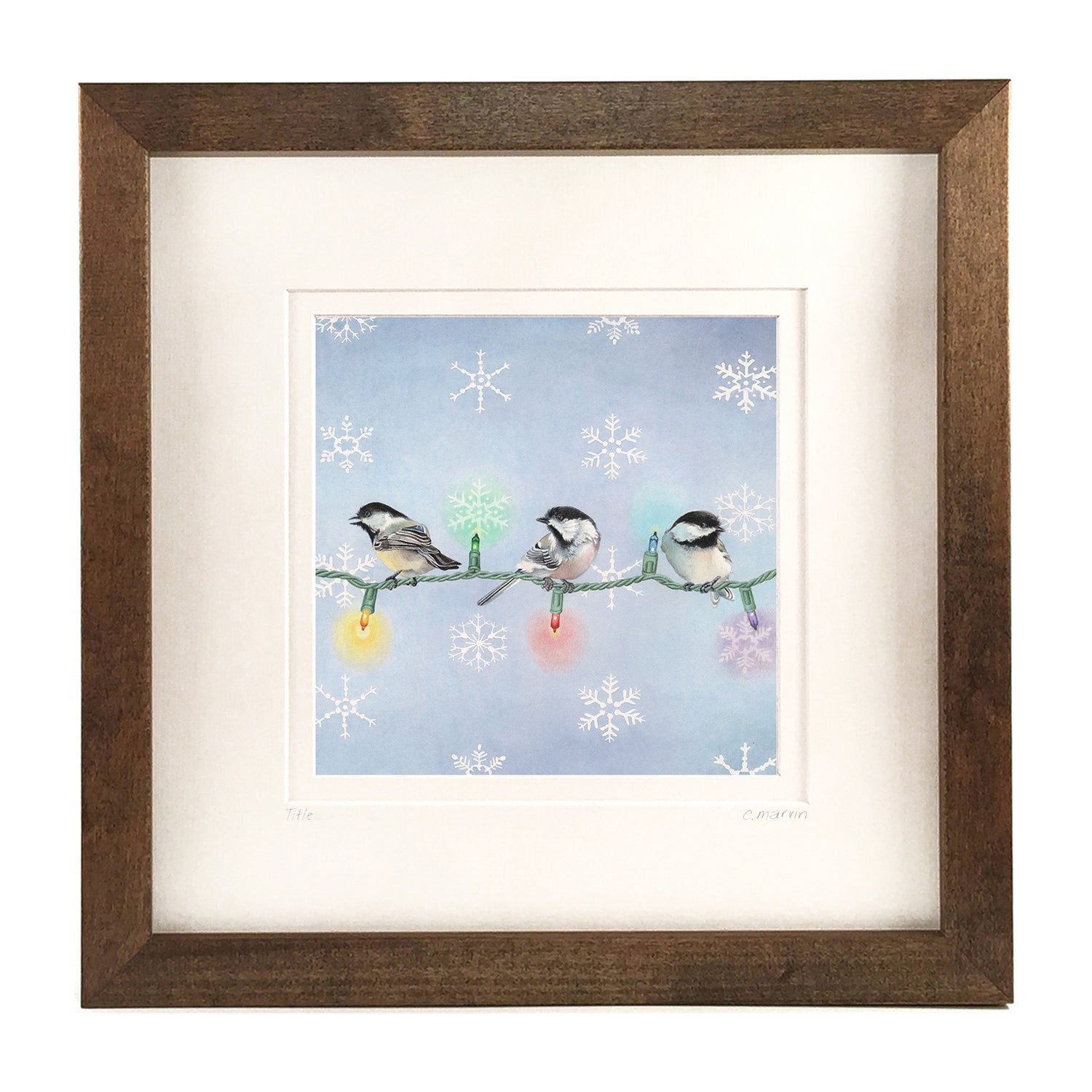 Chickadees - Walnut / Small Framed Print (13.5") is backordered and will ship as soon as it is back in stock.