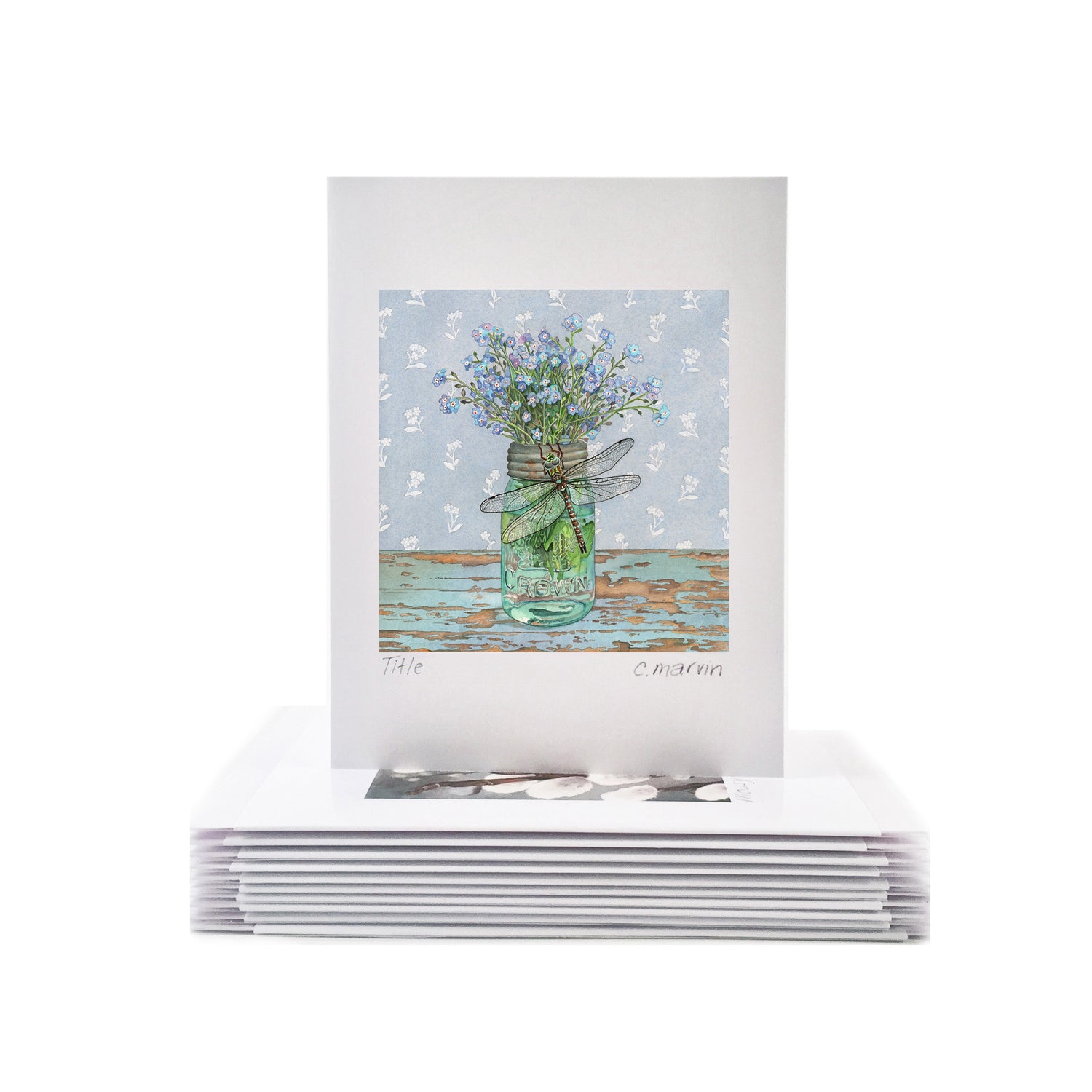 Each art card measures 4X5", comes with a matching white envelope (5.75X4.5") and is titled and signed within a clear plastic sleeve. The print is beautifully crisp and fade-resistant.