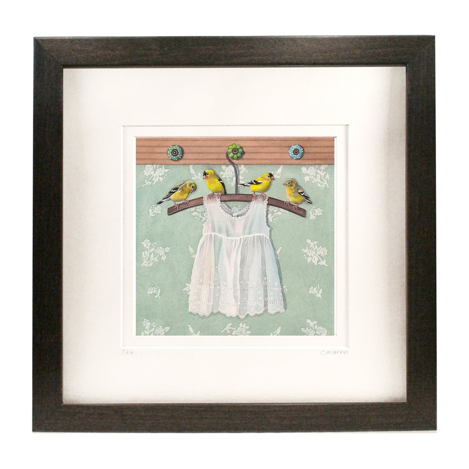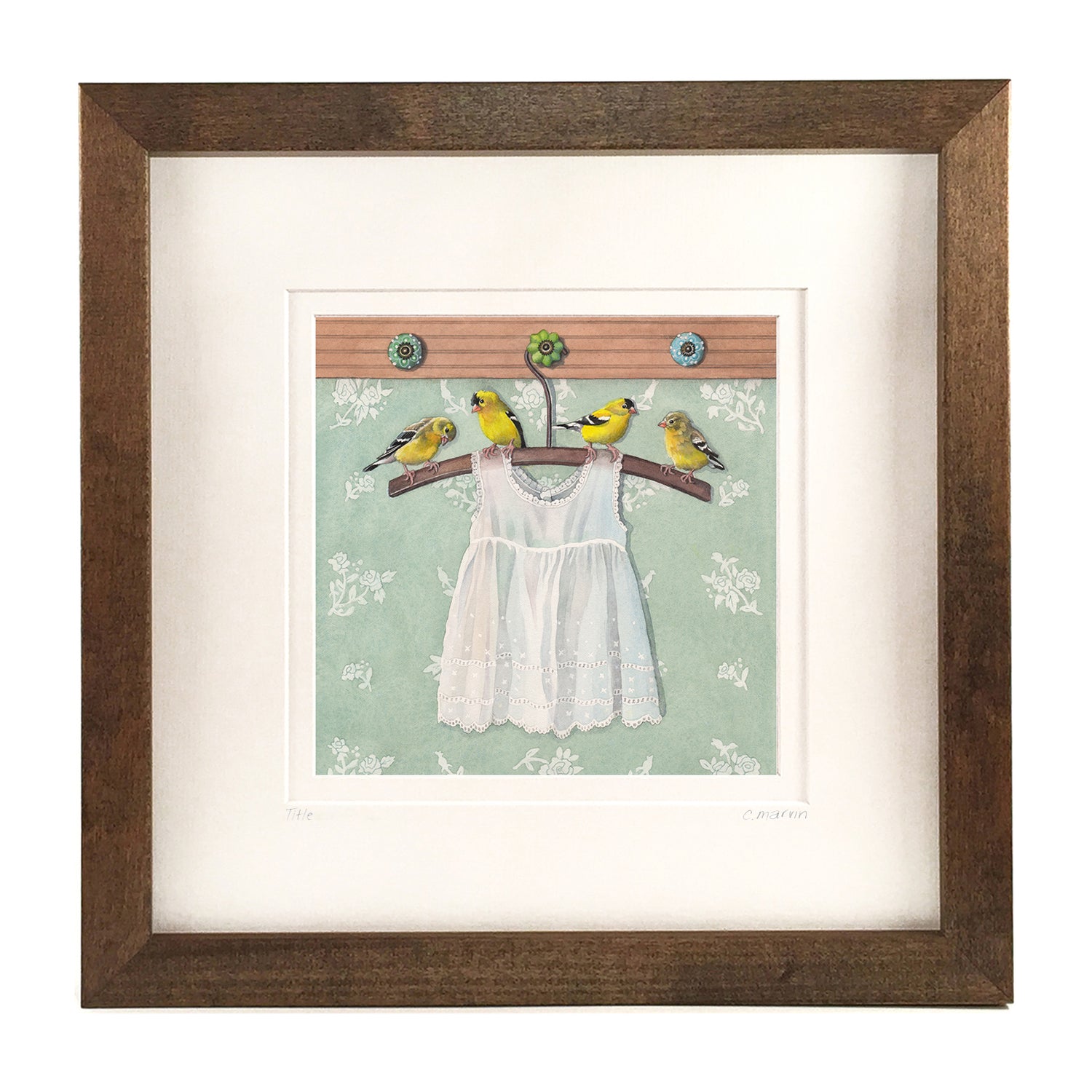 Each framed, limited edition is numbered (minis excepted) and signed by hand from a series of 250 and is beautifully crisp, vibrant and clear. Inks are archival quality, with superior durability and light resistance. The gallery-style frame is made of basswood and is stained in your choice of colour: walnut, ebony or driftwood. The natural grain of the basswood comes through beautifully with these stains. On a wall, they have a lovely, yet unassuming presence that complements the subtlety of the original watercolour.