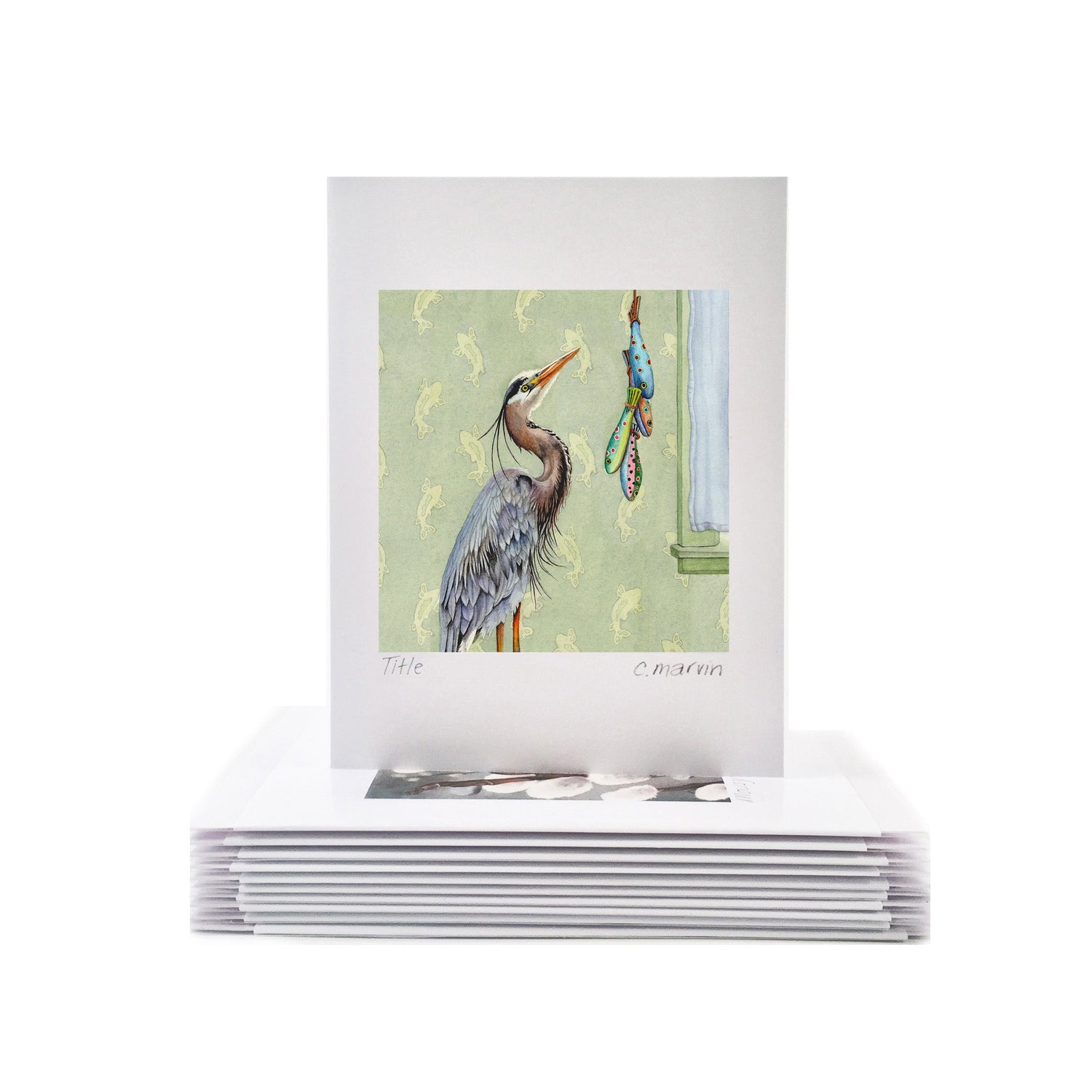 Each art card measures 4X5", comes with a matching white envelope (5.75X4.5") and is titled and signed within a clear plastic sleeve. The print is beautifully crisp and fade-resistant.