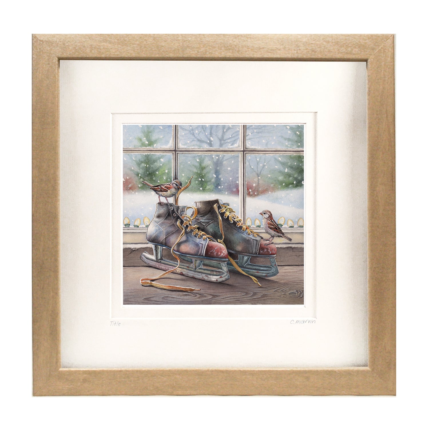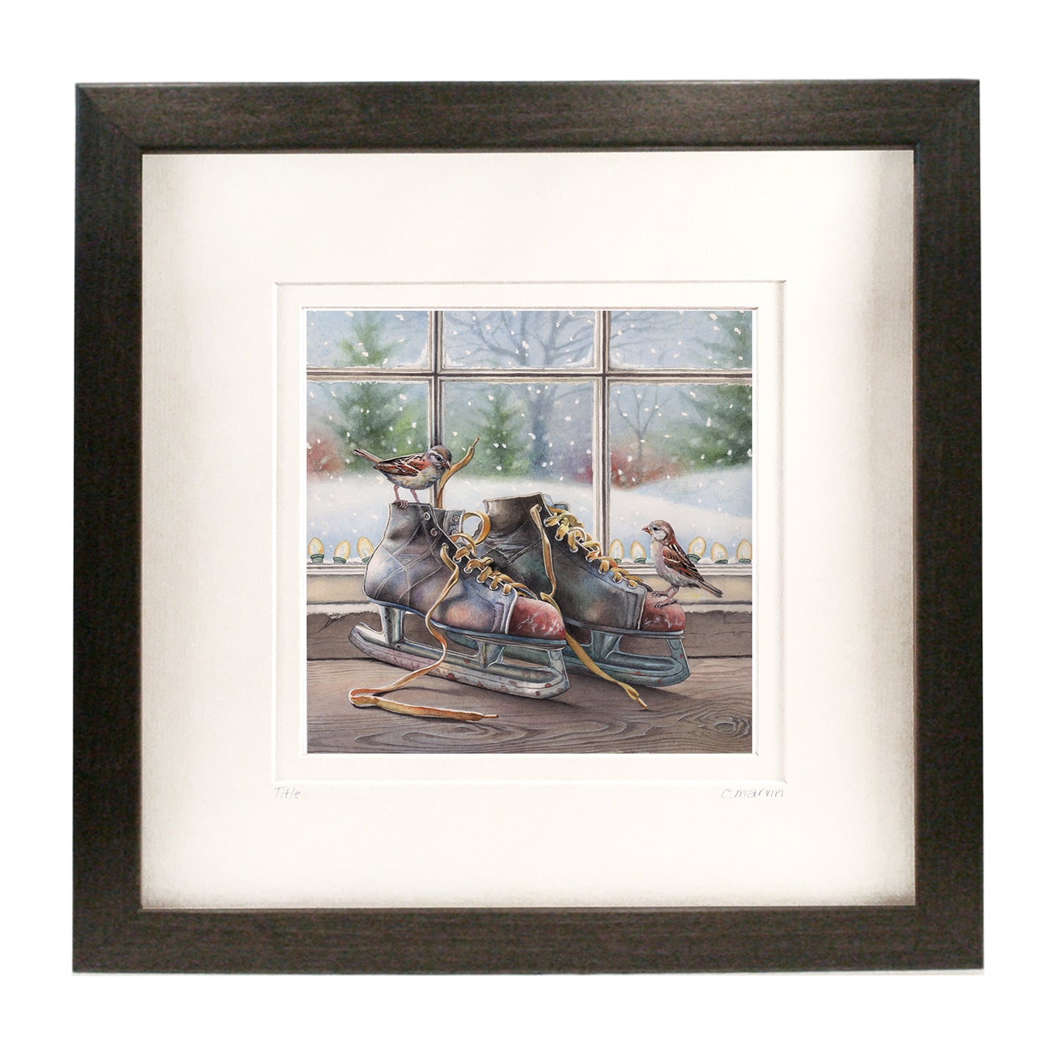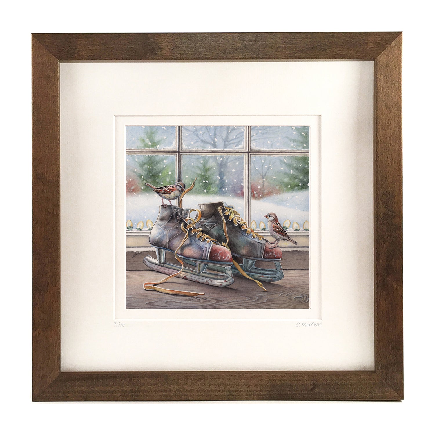 Each framed, limited edition is numbered (minis excepted) and signed by hand from a series of 250 and is beautifully crisp, vibrant and clear. Inks are archival quality, with superior durability and light resistance. The gallery-style frame is made of basswood and is stained in your choice of colour: walnut, ebony or driftwood. The natural grain of the basswood comes through beautifully with these stains. On a wall, they have a lovely, yet unassuming presence that complements the subtlety of the original watercolour.