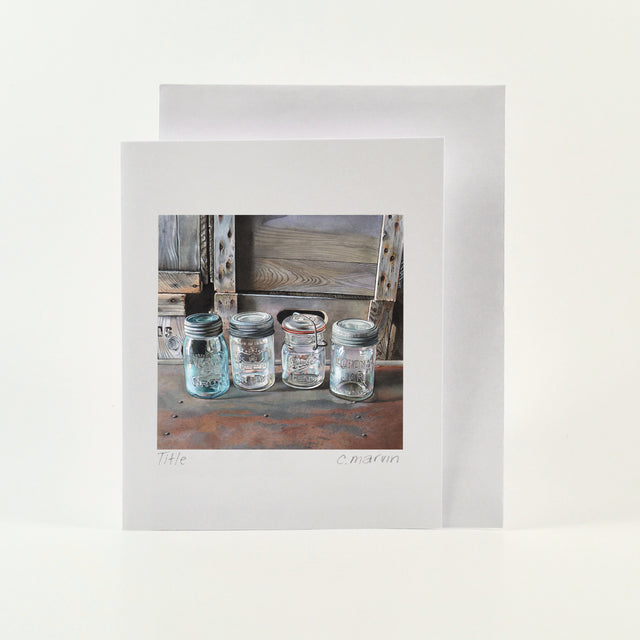 Each art card measures 4X5", comes with a matching white envelope (5.75X4.5") and is titled and signed within a clear plastic sleeve. The print is beautifully crisp and fade-resistant.