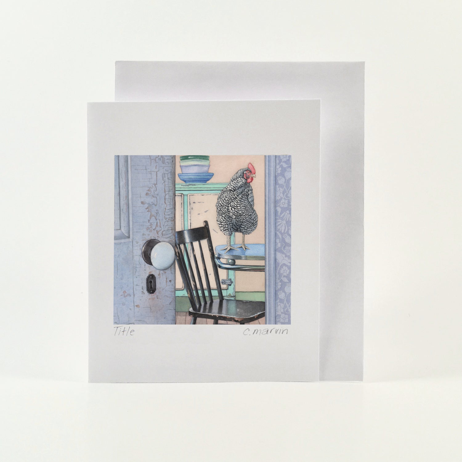 Each art card measures 4X5", comes with a matching white envelope (5.75X4.5") and is titled and signed within a clear plastic sleeve. The print is beautifully crisp and fade-resistant.