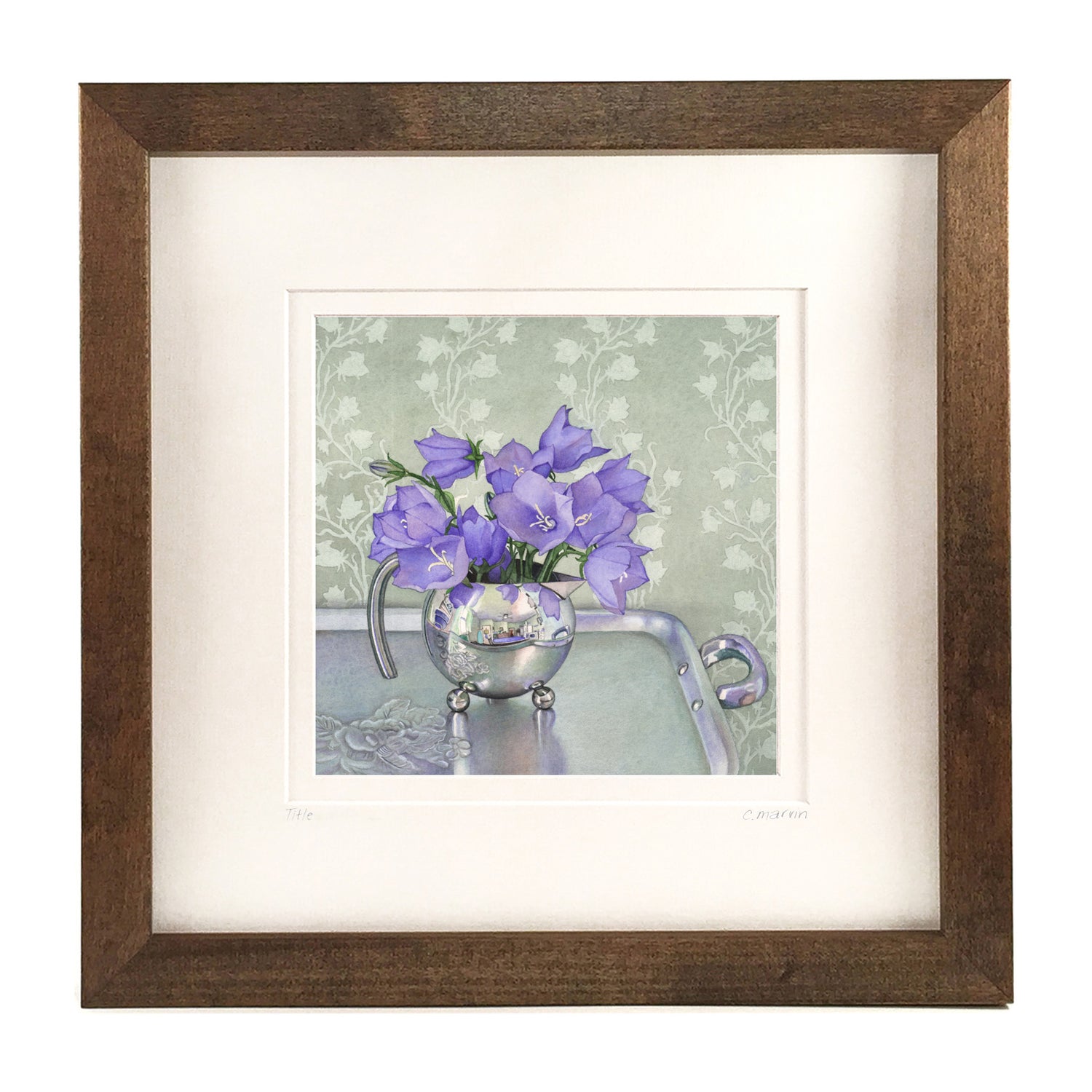 Each framed, limited edition is numbered (minis excepted) and signed by hand from a series of 250 and is beautifully crisp, vibrant and clear. Inks are archival quality, with superior durability and light resistance. The gallery-style frame is made of basswood and is stained in your choice of colour: walnut, ebony or driftwood. The natural grain of the basswood comes through beautifully with these stains. On a wall, they have a lovely, yet unassuming presence that complements the subtlety of the original watercolour.