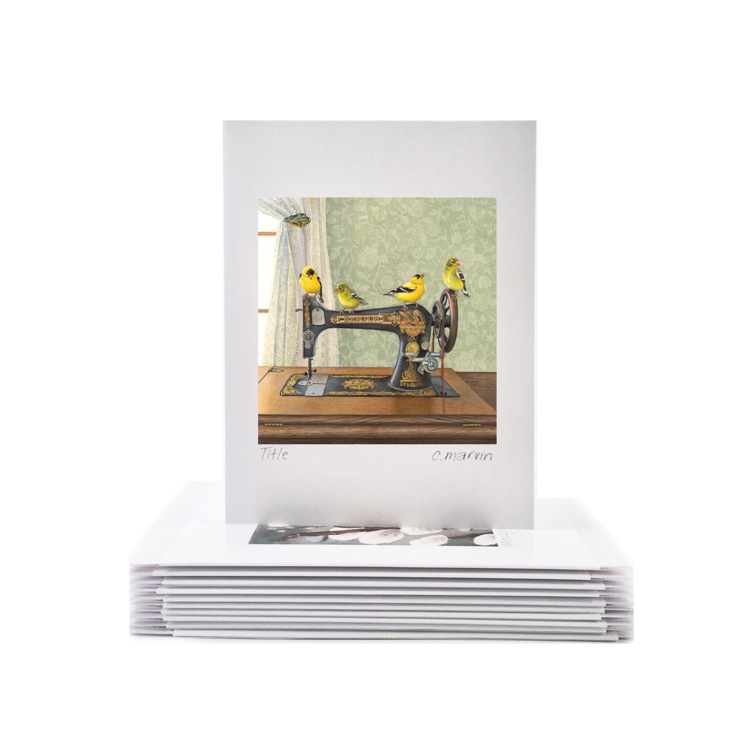 Each art card measures 4X5", comes with a matching white envelope (5.75X4.5") and is titled and signed within a clear plastic sleeve. The print is beautifully crisp and fade-resistant.