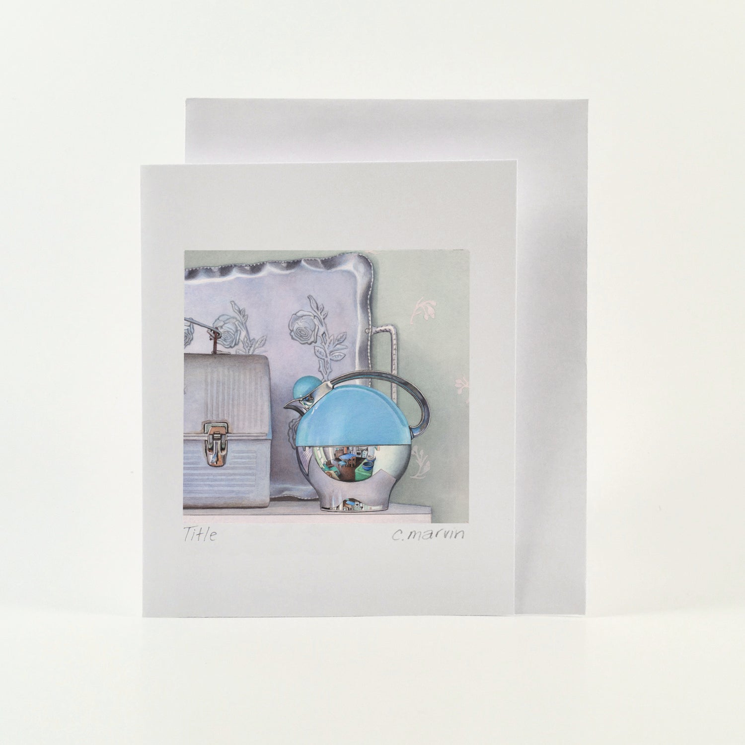 Each art card measures 4X5", comes with a matching white envelope (5.75X4.5") and is titled and signed within a clear plastic sleeve. The print is beautifully crisp and fade-resistant.