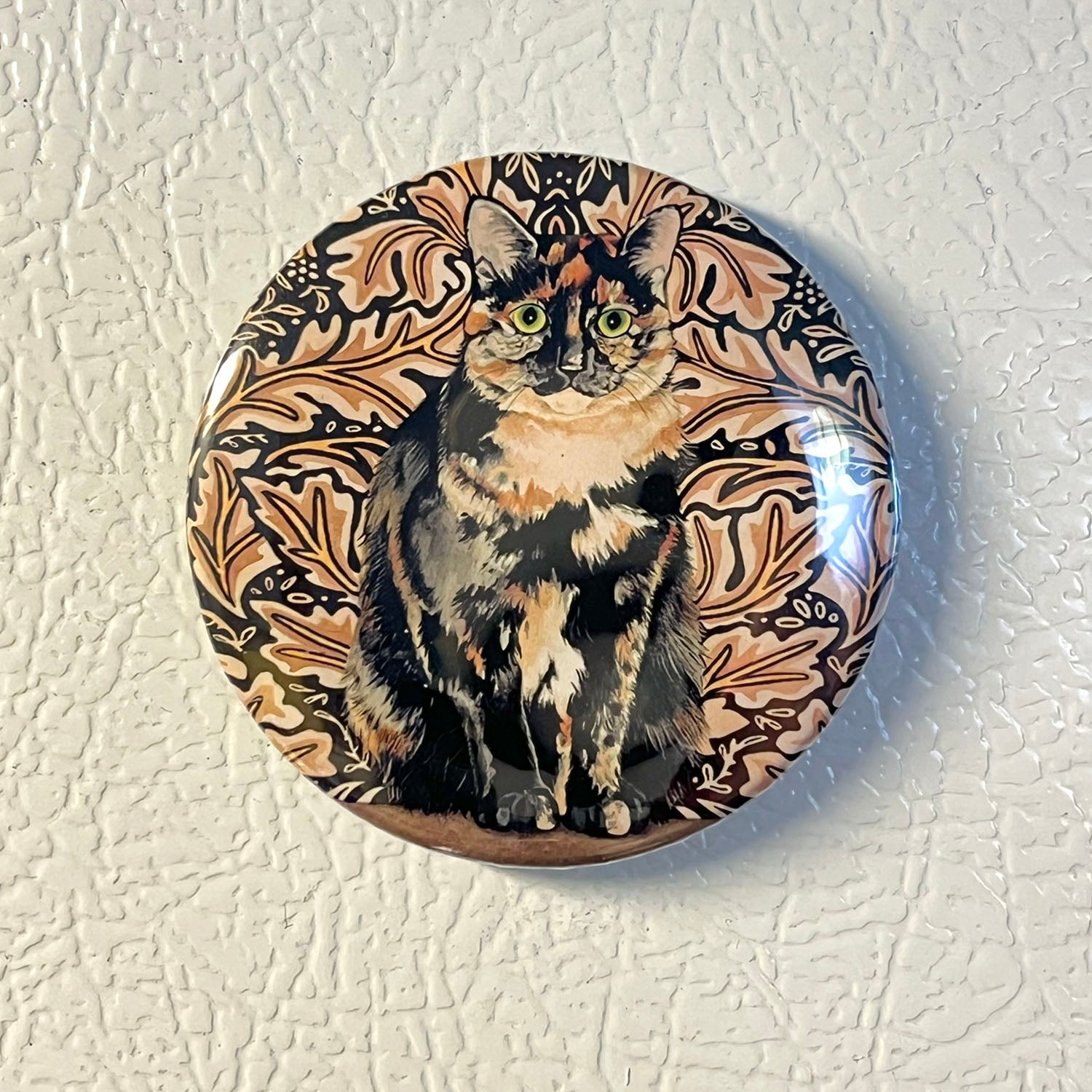 Each magnet measures 2.25” round and is totally protected from the messy kitchen environment with a laminated surface. Beautifully packaged with a removable backing, these are great tucked in an art card or just gifted on their own. The magnet is very strong and capable of holding many papers and photos on your fridge, whiteboard, filing cabinet or locker.